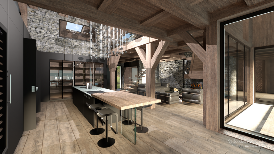 Création d'un chalet en ossature bois, en combinant les éléments rustiques du bois avec un design intérieur moderne, voici un chalet chaleureux et accueillant qui offre à la fois le confort contemporain et le charme intemporel de la construction en ossature bois.
